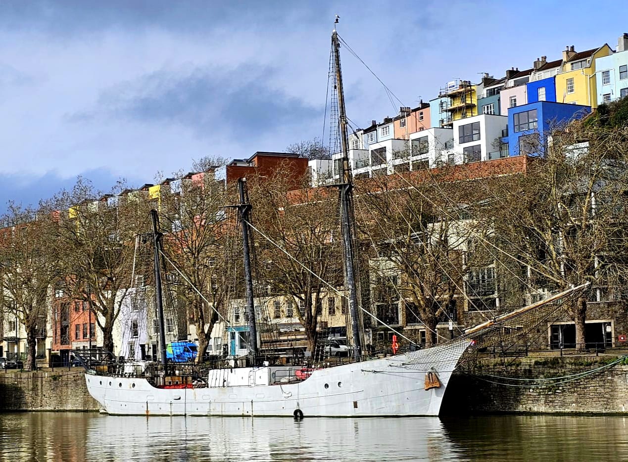 Ein etwas bedrückender Anblick des Dreimast-Topsegelschoners, aufgenommen in Bristol